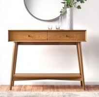 | Деревянные консоли с металлическим каркасом | Каркас из металла обеспечивает надёжность, а столешница может быть из дерева, МДФ со шпоном или в цветной эмали — популярны в стилях лофт и минимализм |
